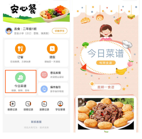 點擊“今日菜譜”查看今日菜品展示。
